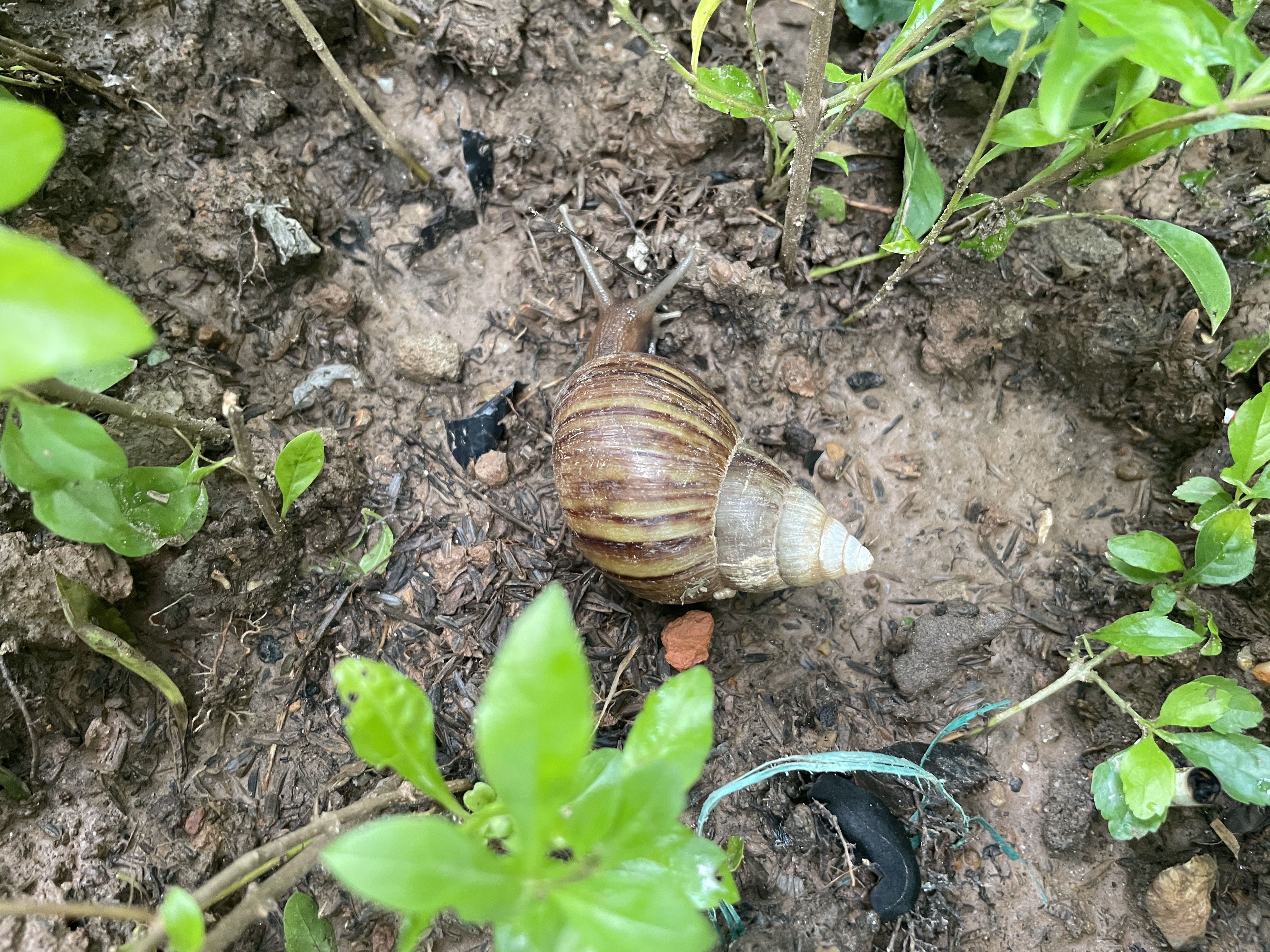 비가 와서 달팽이가 여행을 나서네.